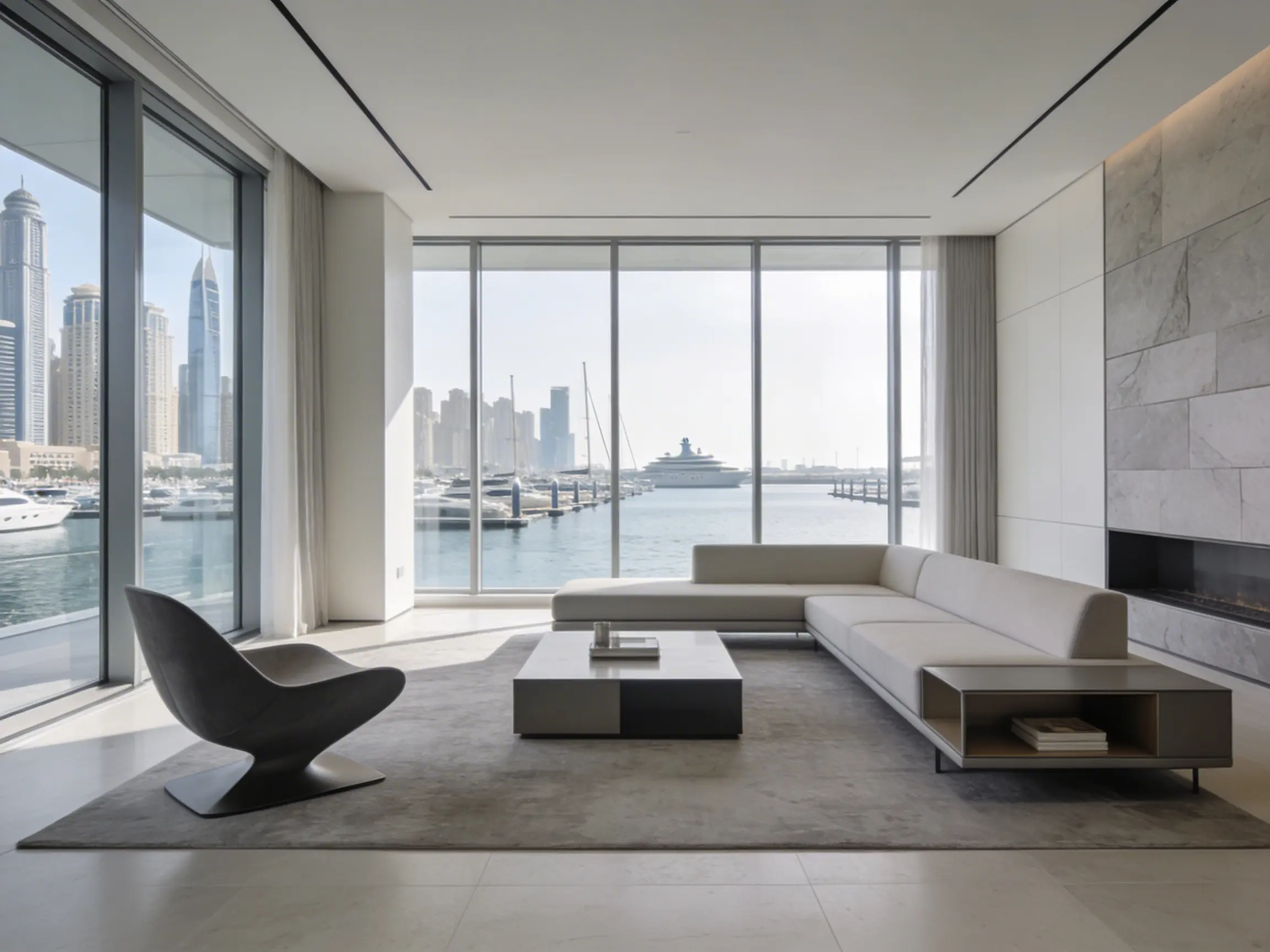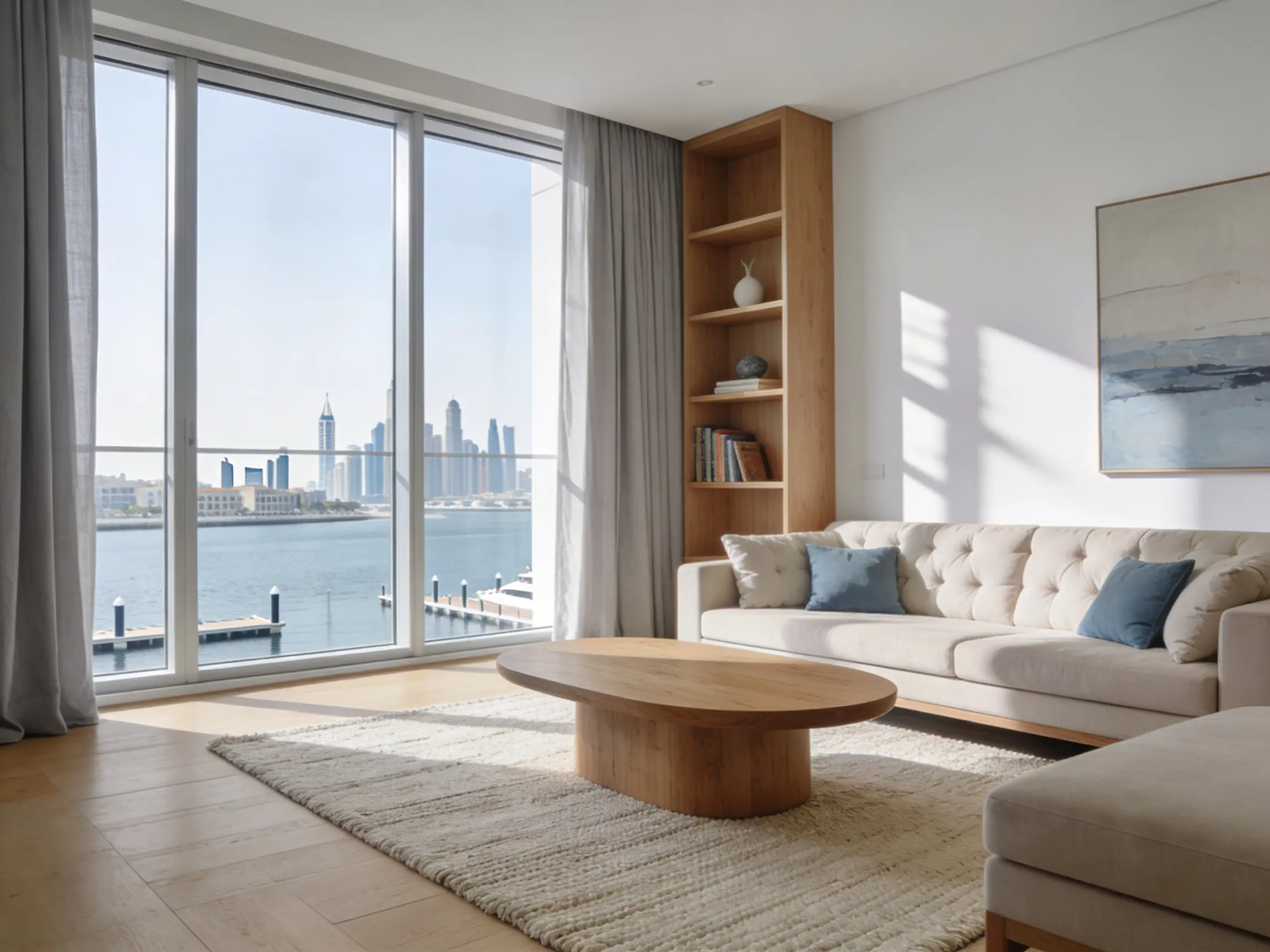 Apartments with direct marina or sea views deserve a design that works with that outlook, not against it. Our marina view apartment interiors are planned to frame the view, maximize natural light, and create a connection between the inside and the water beyond. Every layout decision is made with the view as a central part of the design story.